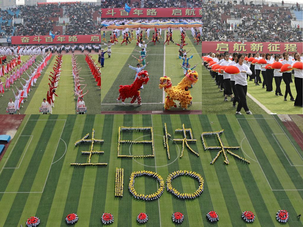随后进行的是开幕式表演。由全校教职工带来的排舞《我爱你,中国》,用美的动作和姿态诉说着对祖国的热爱;具有浓厚民族风韵的展演《中华大家园》展示了学校体育艺术教育传承中华优秀传统文化的成果。最后,由1200名同学表演的大型团体操《妈妈教我一首歌》气势磅礴,震撼人心。当她们整齐有序变换队形队列时,“1921-2021”“七一”“生日快乐”“100”字样清晰呈现,100朵祝福的花朵在操场上同时绽放。