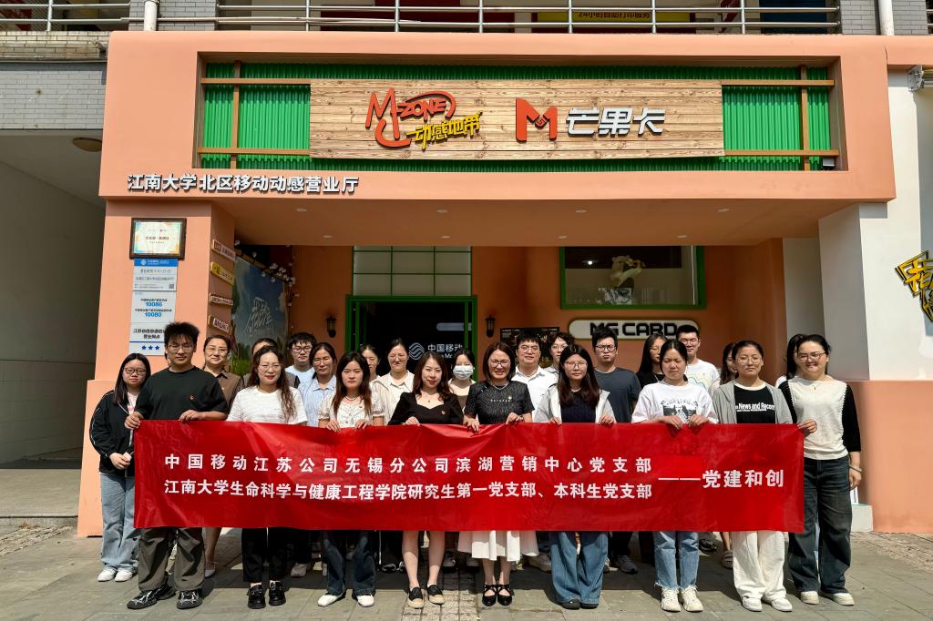 为推进学习型、服务型、创新型党组织建设,整合党员教育资源,5月29日,江南大学生命科学与健康工程学院研究生第一党支部、本科生党支部与中国移动通信集团江苏有限公司无锡分公司滨湖营销中心党支部在江南大学北区移动营业厅举行了“党员志愿服务基地和党建和创”共建签约仪式。无锡移动公司滨湖营销中心副经理瞿静,生命科学与健康工程学院党委副书记、副院长孙颖,党建辅导员张世祺及支部党员代表共同参加了本次活动。