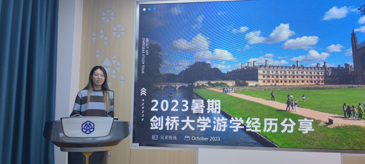 接下来,学院李瑞怡副研究员向与会同学交流了自己求学期间在爱尔兰、英国的游学留学经历,分享了海外学习、生活、工作的体会和趣事,鼓励同学们积极进行探索,尝试无限可能。制药2002班吴亚俊彧分享了自己今年暑期去剑桥大学的游学经历,她向同学们讲解了自己留学申请和准备的过程,介绍了在剑桥的学习实验、参观走访、合作活动、结交朋友的经历,她表示游学让自己锻炼了能力、增长了见识、收获了友谊。