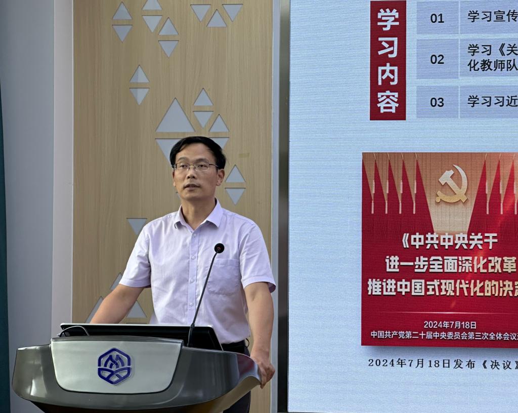 会上还进行了政治理论学习。一是史志洪传达了习近平总书记在党的二十届三中全会上的重要讲话精神,并对会议所提出的各项政策与要求进行解读;二是领学了《关于弘扬教育家精神加强新时代高素质专业化教师队伍建设的意见》(以下简称《意见》),《意见》指出强国必先强教,强教必先强师,要加强新时代高素质专业化教师队伍建设,进一步营造尊师重教良好氛围;三是学习了习近平总书记在全国教育大会上的讲话精神,总书记的这一重要讲话高屋建瓴、思想深邃、内涵丰富,使教师们进一步明确了自身所肩负的教育使命与责任,表示将以更加饱满的热情和更高的工作要求投身于教育教学工作当中。随后,全体教师集中观看了《意见》和2024年全国教育大会的相关教育视频。