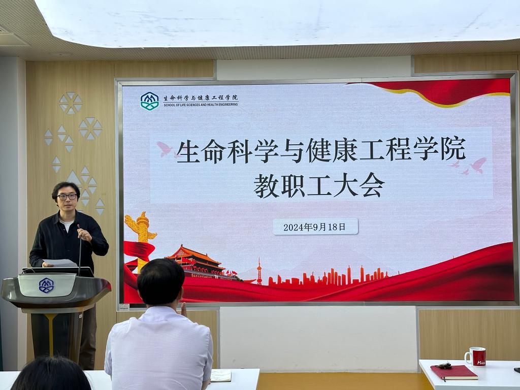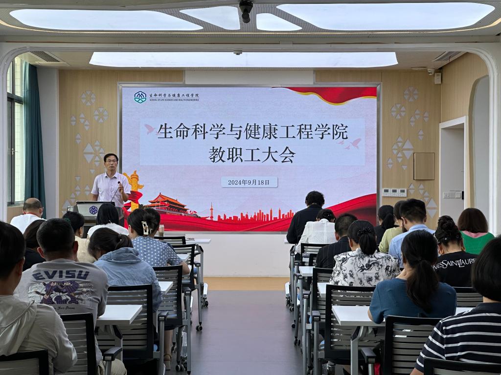 9月18日下午,生命科学与健康工程学院教职工大会在学院306会议室召开。学院领导班子成员、全体教职工参加了会议。会议由学院党委书记史志洪主持。