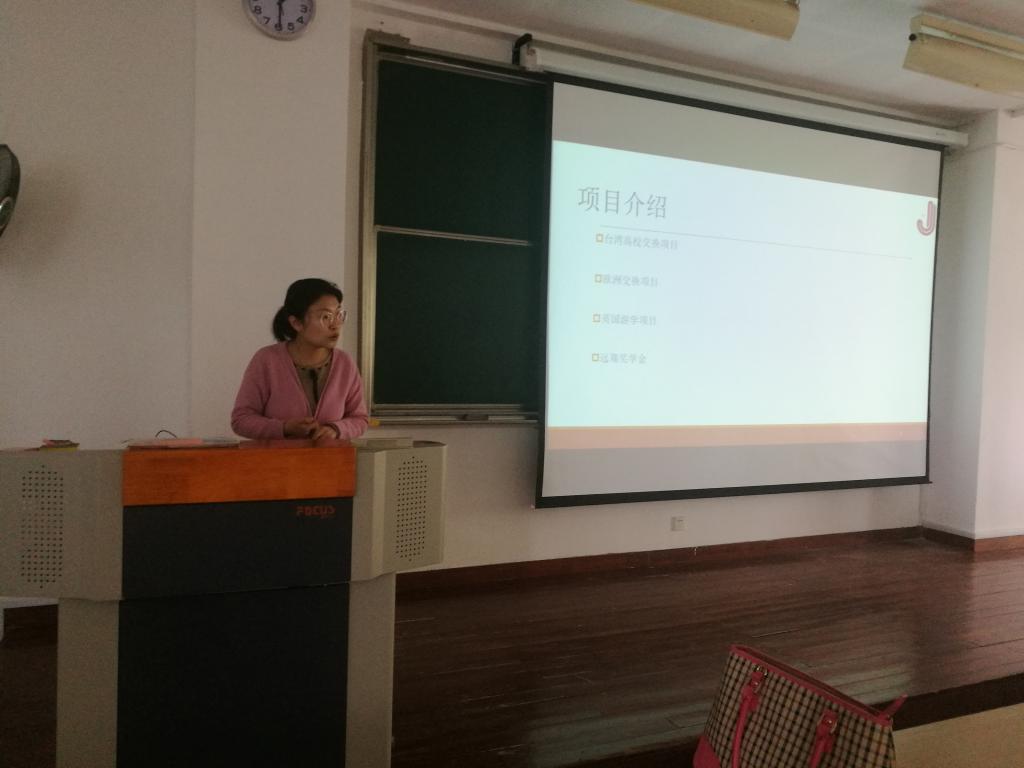 刘舒皎为大家做了江南大学国际交流项目报告,具体介绍了江南大学国际交流、交换项目信息、申请条件以及学校的支持政策,使同学们对学院的国际交流项目有了更深入的理解。辅导员冯亚东向全体同学介绍了学院针对社会工作专业同学开展的重点台湾项目,以及包括“远翔、君澜、海辉”在内的国际交流奖学金情况及申请条件,鼓励同学们走出校园,走向世界,提升自我。无锡澳星留学项目专员秦丹,对英美澳加等国家交换项目作了介绍,为同学们打开视野的同时,也帮助同学们更好的规划了大学生活。