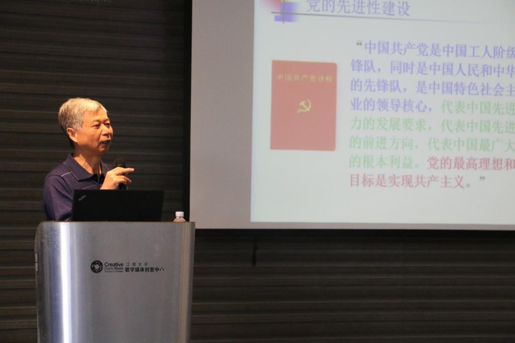 10月13日,江南大学原党委副书记娄国栋围绕党的先进性进行讲述,介绍了中国共产党在过去为加强党的先进性作出的一系列努力,包括推翻镇压在中国人民头上的帝国主义、封建主义、官僚资本主义三座大山、建立符合我国实际的先进社会制度、改革开放等举措。同时,他指出新时期党面临的执政环境的复杂性、影响党的先进性因素的复杂性,表示必须深刻认识党面临的各种严峻考验和危险,贯彻落实新时期党的先进性建设的新任务新要求,推动从严治党纵深发展,而大学生更应在培养奋斗精神和增强综合素质上下功夫;接着,马克思主义学院张晓虹老师围绕对大学生进行反腐倡廉教育的意义、中国共产党人与反腐倡廉、廉政建设的关系、腐败以及腐败的后果等八个方面进行阐述,表示廉政建设要从我做起,从现在做起,从身边做起。