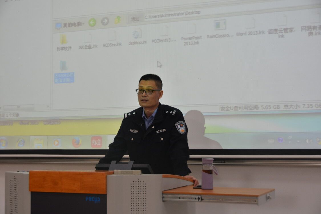 为切实增强新生安全防范意识和避险能力,保障学生安全,法学院于2019年11月11日在2A127下午开展了新生安全知识讲座,讲座由滨湖公安分局内保大队副大队长乔智勇主讲,辅导员帕日旦木、2019级全体新生参加了此次讲座。