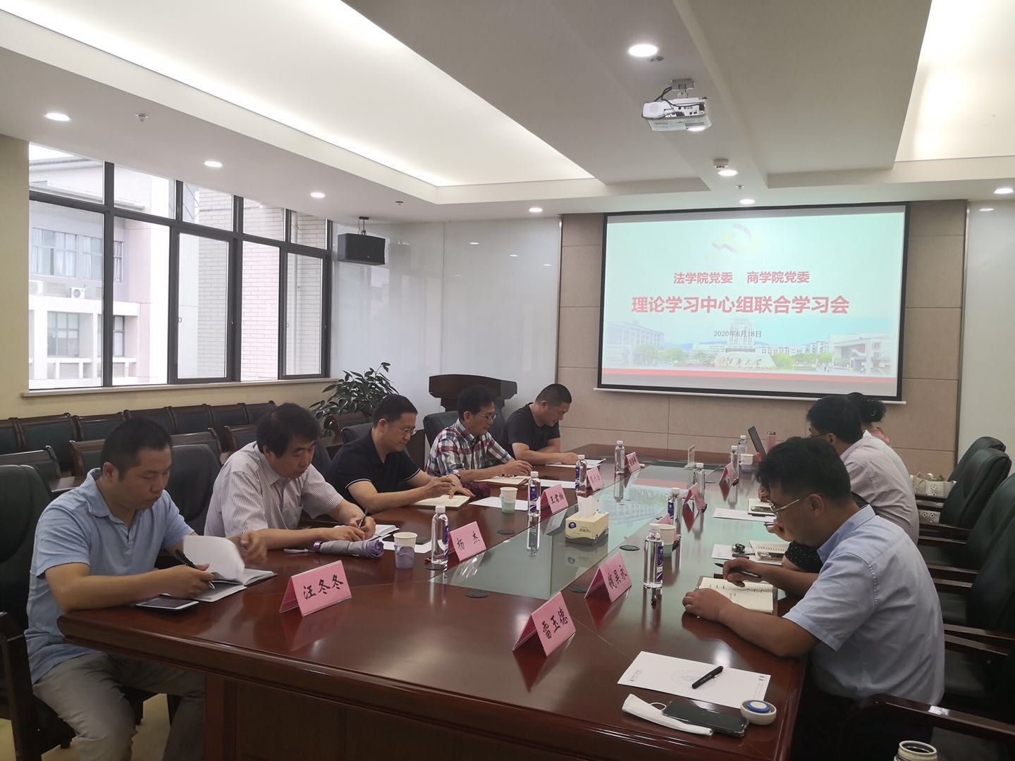 为深入推进“两学一做”学习教育常态化制度化,紧密围绕“不忘初心、牢记使命”主题教育整改,切实加强领导班子思想政治建设,近期,商学院党委、法学院党委联合举行理论学习中心组学习会,两个学院党政班子成员等参加了学习活动。学习会由法学院党委书记杨杰、商学院党委书记张海峰共同主持。