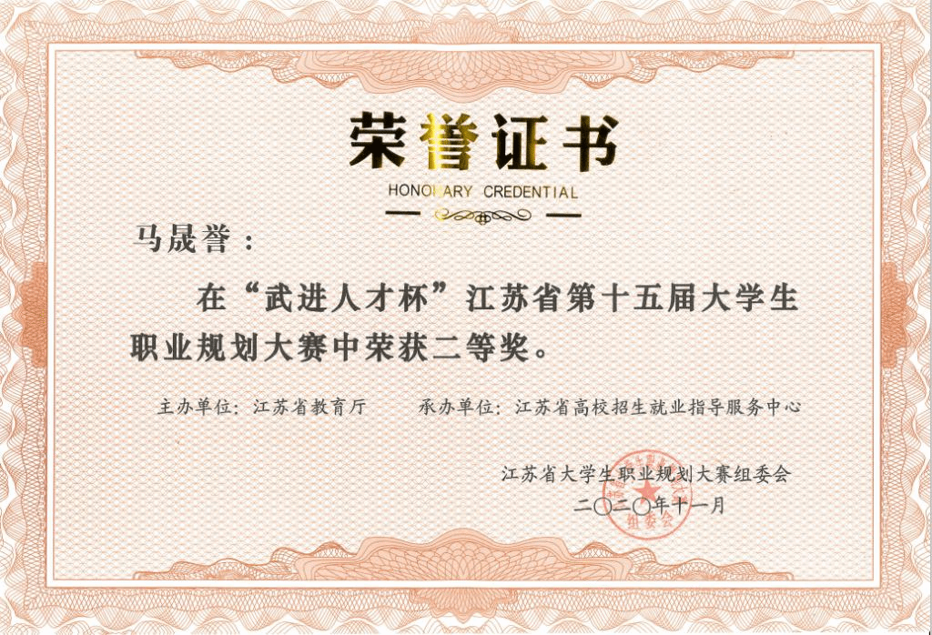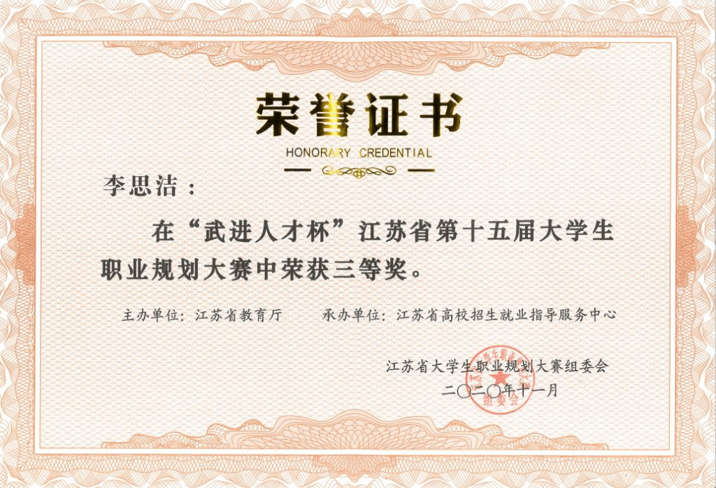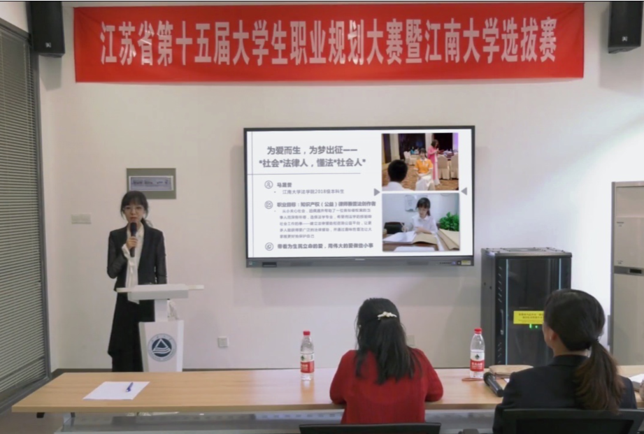 江苏省第十五届大学生职业规划大赛于4月份正式启动,历时近八个月。法学院党委高度重视,举行了法学院职业规划大赛,经过层层筛选,在众多优秀的职业规划设计书推选6位优秀的选手进入院、校评选。其中马晟誉、李思洁在院赛、校赛选拔中,通过重重考验获得认可,代表江南大学参加省级总决赛。在省级决赛中,二位同学详实的规划书和生动的讲述在激烈角逐中脱颖而出。马晟誉同学以“为爱而生,为梦出征——‘社会’法律人,懂法‘社会人’”为题,讲述了自己立志成为一名知识产权(公益)律师兼普法创作者的缘由历程,并分阶段论述了自己的未来规划;李思洁同学以“做勇担社会责任的公益律师”为题,讲述了自己的志愿成为一名公益律师,并对自己未来如何达成这一目标进行了分享,并最终坚定“愿心中充满正义,目光不断往返于事实与规范之间”的职业选择。最终两位优秀的法学院学子在总决赛荣获殊荣。