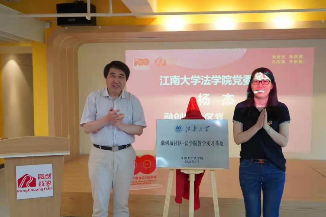 法学院党委书记杨杰为 “江南大学法学院(融创城社区)大学生实践基地”进行揭牌