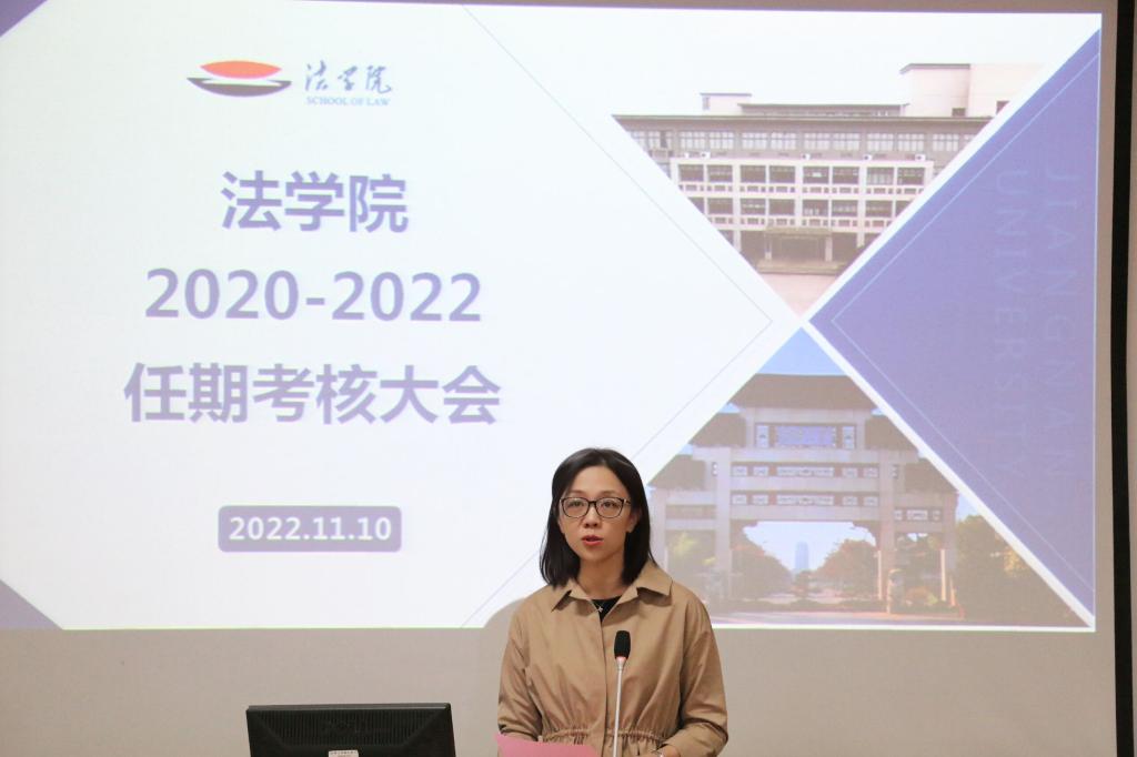 本次考核大会严格按照《江南大学第七轮任期目标考核工作安排》执行,学院深刻认识、全面理解考核工作的意义,认真对待考核工作。过去三年,学院围绕立德树人为根本任务,聚焦内涵发展,各项工作较上个任期均取得明显进步。今后,法学院将坚持“为党育人、为国育才”的根本宗旨,为全面推进学校“十四五”规划和“奋进计划”作出应有的贡献。
