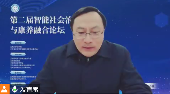 上午为大会发言,第一阶段的开幕式由江南大学法学院院长王君柏主持,江南大学党委常委、副校长吴正国,江苏省老年学学会副会长张伟新,无锡市卫健委老龄工作委员会办公室处长陈建忠分别致辞。