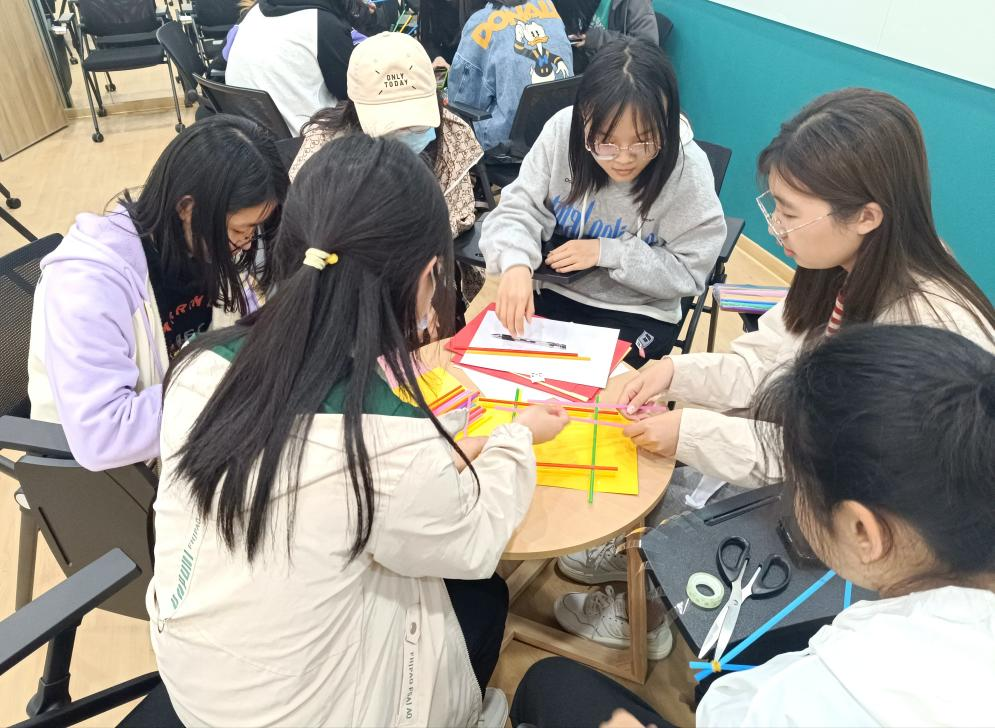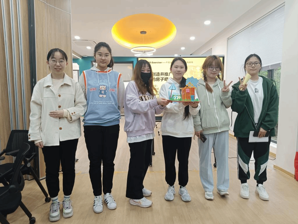 活动开始,以“绘出我的人际关系网”为题,引导让学生学会梳理自己的社会关系。伴随轻松愉悦的兔子舞音乐,同学们手牵手、肩并肩进行热身与破冰运动。接着,“同心圆、面对面”活动中,同学们跟随音乐节点认识新朋友们,一句句问候拉近彼此的距离。“你划我猜”围绕太湖、金字塔、书籍、帆船等元素进行集体合作,最终谜底揭晓,每个元素汇集成江南大学校徽,寓意着大家由个体相聚太湖之滨,希望珍惜来之不易的缘分,树立集体意识。在“搭建我们的房子”游戏环节,学生们在小组中开展合作,建设小组的队名、队徽和团队口号并使用卡纸、吸管、画笔等搭建理想中的房子,同学们齐心协力,异彩纷呈,一座座精美的“房子”经过共同的努力展现在大家面前。最后,缪晶晶对本次活动进行总结。