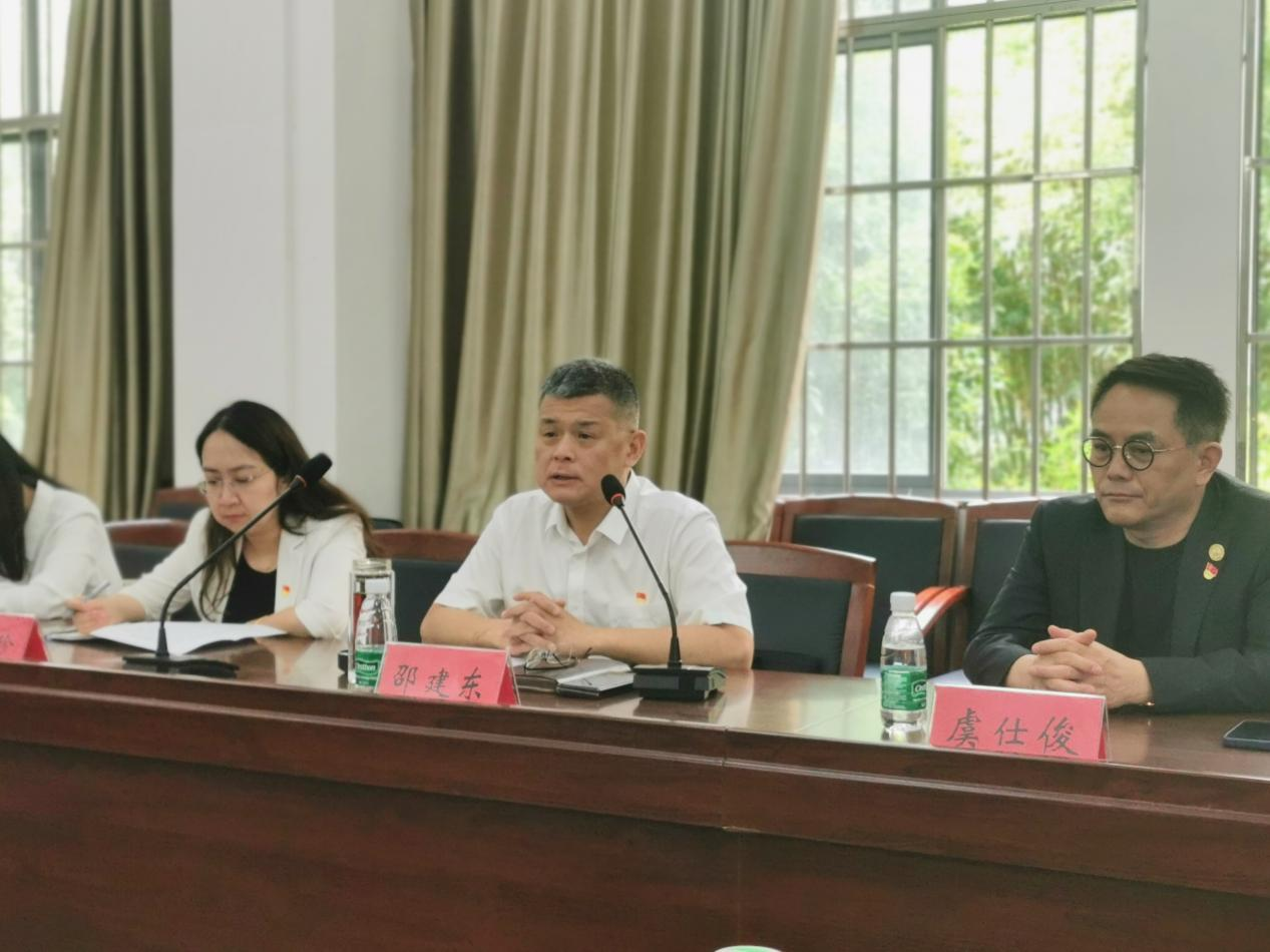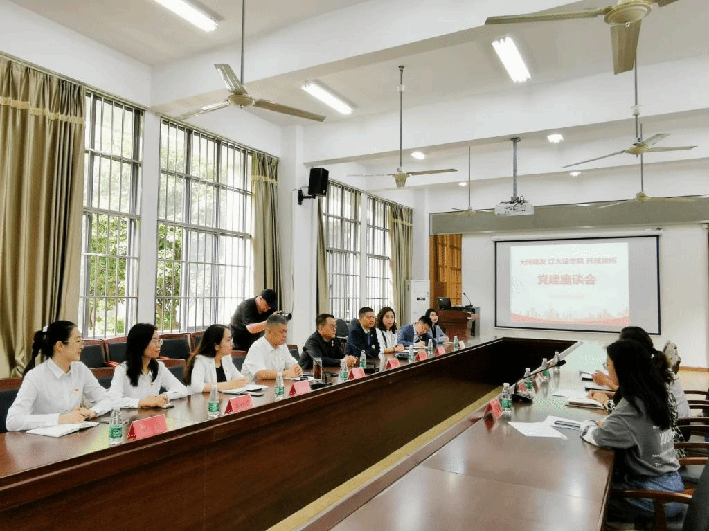 党建座谈会上,陆敏芝代表学院对邵建东、虞仕俊一行表示诚挚欢迎,并对法学院发展沿革、专业特色、党建工作等进行介绍,她希望通过多方深入交流,合作共建,切实提升党建凝聚力,扩大党建“朋友圈”,实现校企合作双向赋能和共享共赢。邵建东、乔珍珍分别介绍了无锡市建设发展投资有限公司情况及“红五XIN”党建品牌——“砥砺初心、铸强核鑫、守正创新、薪火相传、欣欣向荣”,通过党建引领,强化党业融合,汇聚发展动能,不断塑造党建引领业务高质量发展的新优势。虞仕俊介绍开炫律师事务所业务范围、特色服务以及各项事业开展情况,他表示,作为法学院董事单位,会持续增进与学院的合作,为法律人才培养助力增效。