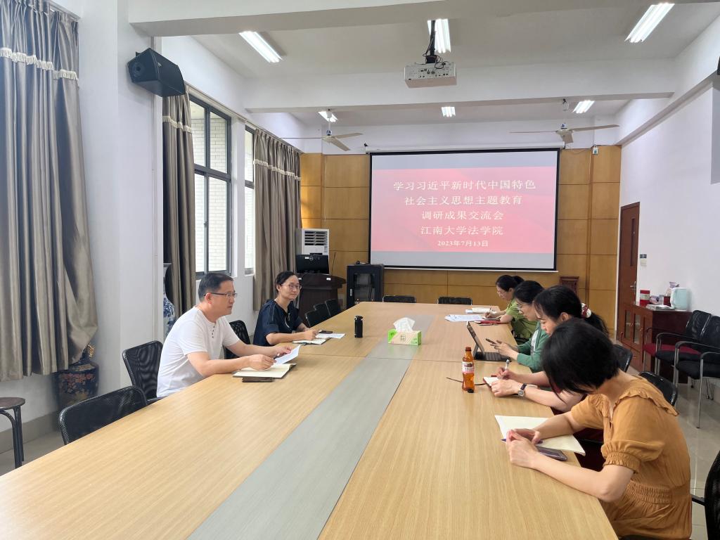 7月13日上午,法学院在A316会议室召开学习贯彻习近平新时代中国特色社会主义思想主题教育调研成果交流会暨党委中心组理论学习,学院全体领导班子成员参加会议,会议由党委书记陆敏芝主持。