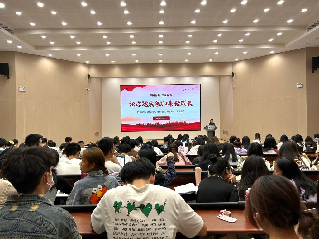 为充分展示社会实践的优秀成果,鼓励学生积极投入社会实践中去,引导广大学生成长为有理想、敢担当、能吃苦、肯奋斗的新时代青年,法学院于10月25日晚上,举办2023年“实践归来话成长”暑期社会实践成果汇报会。学院分团委书记徐雅静,学生组织骨干陈诗慧、张璐、孙佳欣、张靖、赵诣辰、冯瑜、刘永慧、高梓菲等出席会议,全体2023级新生参与本次活动。