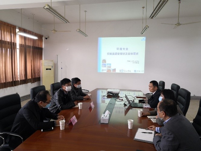 刘仁介绍了学校中央专项设备采购项目,一流本科专业实验室建设,物资信息化处理布局等工作情况。邹华以“环土学院实验室建设现状及目标需求”为题介绍了环土学院实验室建设方面的情况。王震宇、李艳分别剖析了学院实验室建设和发展现阶段的突出问题以及环境学科发展的基础条件平台建设的需求。双方还对环境专业实验室建设如何服务有关专业甚至全校学生、环境工程一流专业建设中实验室方面的需求、宜兴校区与学院建设的衔接、实验室安全建设等诸多方面内容进行了激烈的讨论和深入的探讨。