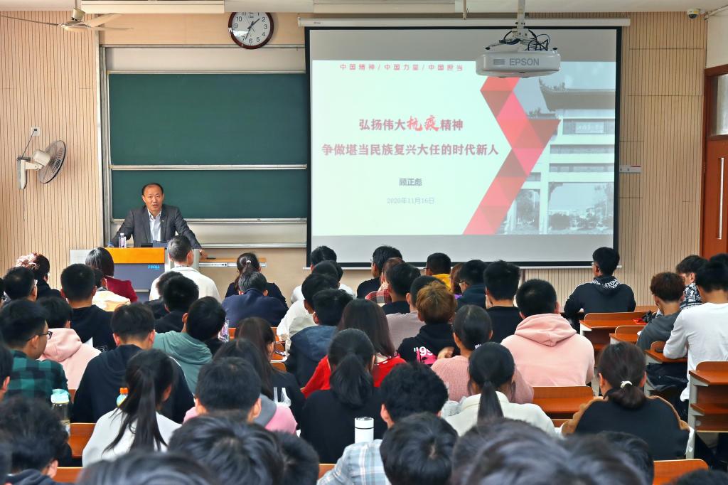 “顾校长的授课内容丰富,旁征博引,启发性强,全面展现了疫情防控期间中国特色社会主义的制度优势,诠释了中国精神、中国力量与中国担当。”同学们纷纷表示,要将课程学习所得内化于心,在学习生活中践行伟大抗疫精神,为中华民族伟大复兴贡献青春力量。