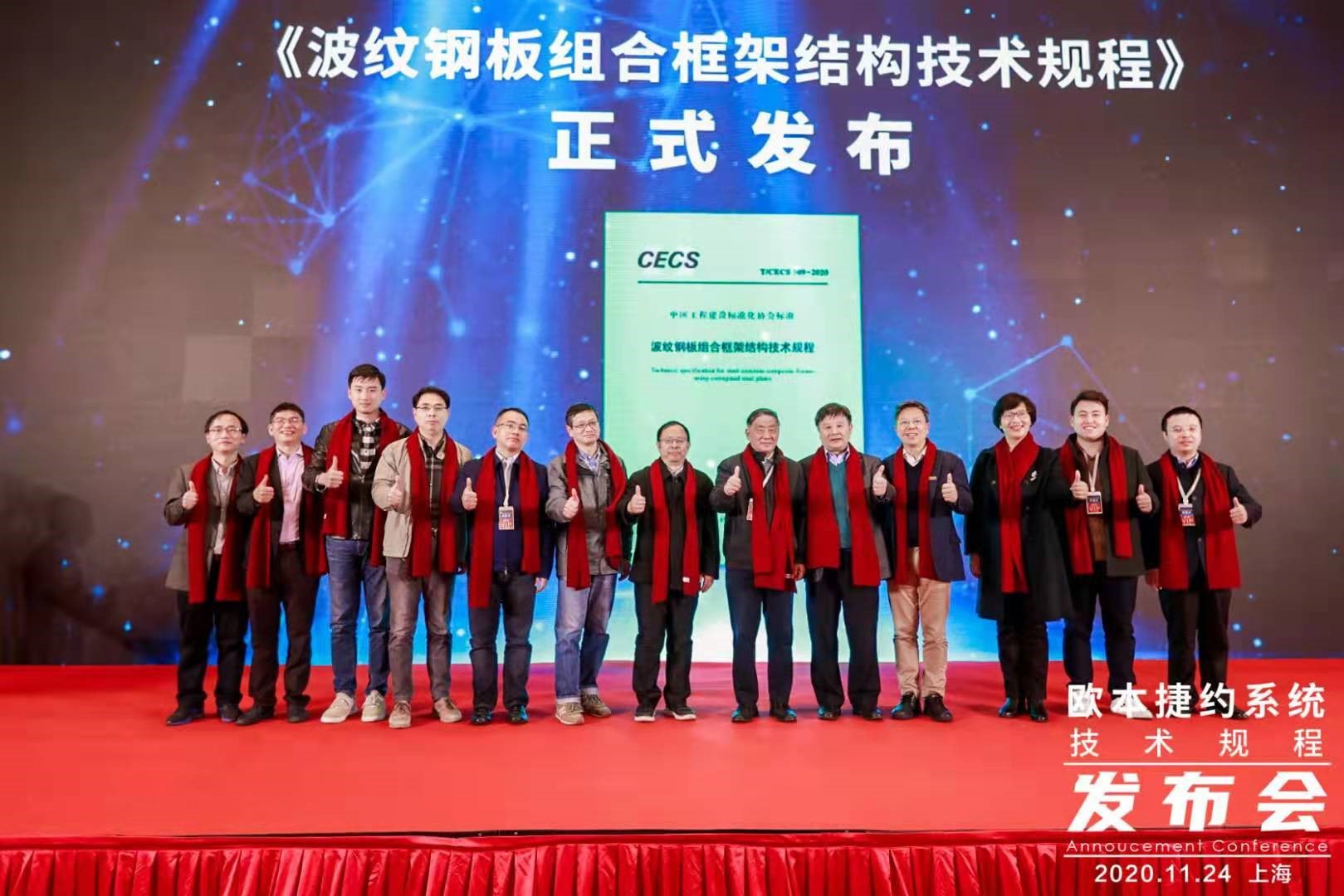 本次评选获奖的波纹钢板组合框架结构系统(又名“捷约”系统)是针对多层框架建筑的全新建造模式,采用工厂预制钢结构、现场浇筑混凝土,构件形式新颖,节点安装便捷,施工免模板免支撑,是一种新型的装配式框架结构。由江南大学和上海欧本钢结构有限公司共同编写的行业标准《波纹钢板组合框架结构技术规程》(T/CECS 709-2020)也在2020年11月24日正式发布。