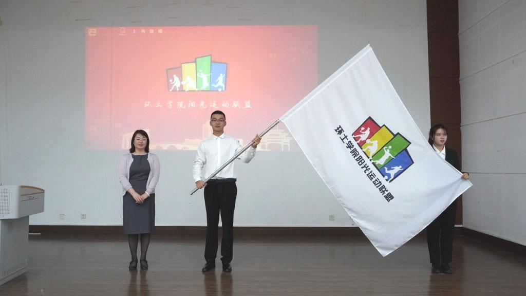 大会伊始,学院学生会文体部张志强同学对学生体育工作进行了汇报与总结,再现运动员们积极进取、顽强拼搏的青春活力。接着,辅导员薛羚伟宣读了校运会成绩。随后,在校运会上打破校男子铅球纪录的郁秦杰同学代表优秀运动员发言。胡娟宣读学院体育工作先进表彰决定并颁奖,与会的其他嘉宾分别为运动会获奖运动员、优秀志愿者等进行颁奖。活动最后,胡娟发布了环境与土木工程学院体育标识,并为阳光运动联盟授旗,与会嘉宾分别为各运动队授旗。