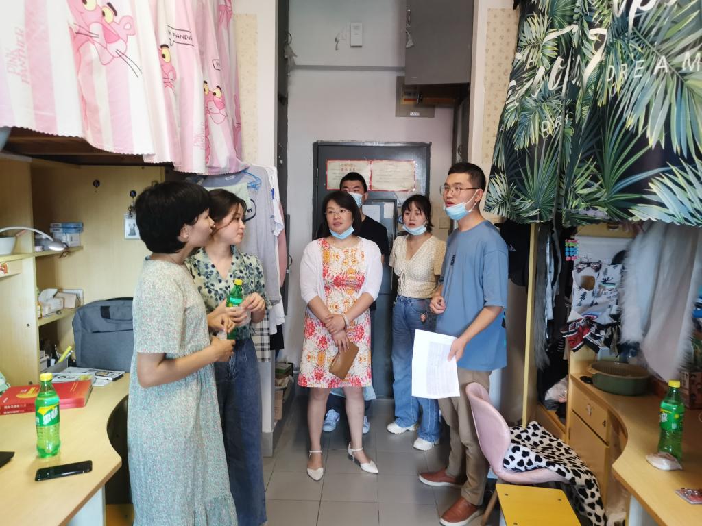 9月17日,环境与土木工程学院党委书记李艳,党委副书记、副院长胡娟,学工办主任周佳赟,辅导员薛羚伟、何涛、李东辉,携慰问品前往学生宿舍、实验室慰问留校学生。