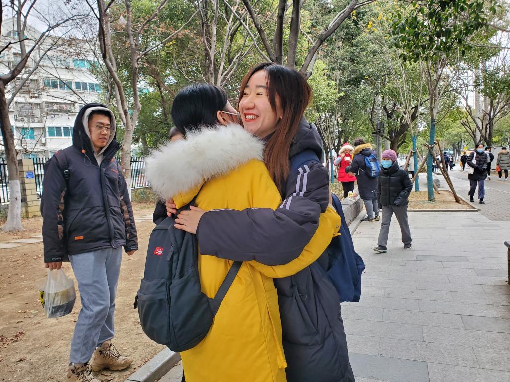 “相信自己,加油!”“别担心,抱一抱,我们始终与你温暖相随。”在学院学生各考点前,党员志愿者们举起加油板,给予拥抱,为进场的考生们加油助威。学院党委在学院学生参加考试的江南大学、无锡商业职业技术学院、无锡机电高职、无锡积余实验学校等四个考点安排志愿服务小组,提供中午订餐协助服务、必备物资服务以及暖心助力服务,为考研学生接送订餐,发放士力架、咖啡条、口罩、暖贴等,提供热咖啡、热水等,给予关心拥抱。