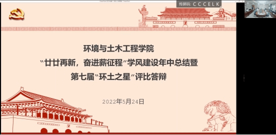 为积极培育和践行大学生社会主义核心价值观,营造争先赶超的学习氛围,挖掘学院大学生群体中的先进典型,激励学院学生勤学奋进,环境与土木工程学院开展第七届“环土之星”评比活动。5月24日,“环土之星”线下答辩会在学院楼D305举行,12名经过初评的候选人进行现场答辩,学院党委副书记、副院长胡娟,分团委副书记薛羚伟,辅导员何涛、李东辉担任评委,2021级全体学生通过腾讯会议线上参加了会议。