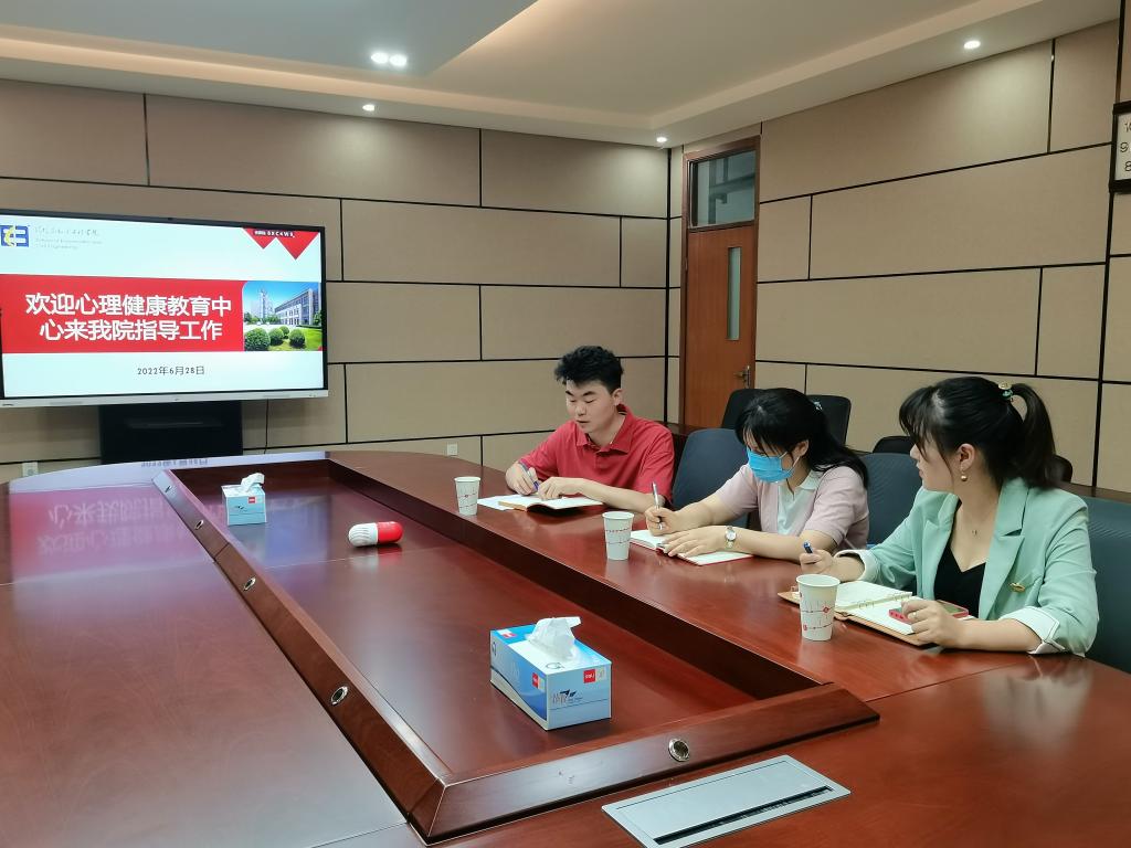 6月28日上午,学校心理健康教育中心陈华平老师来到学院调研指导心理健康教育工作,学院团委书记兼学工办主任周佳赟,辅导员李东辉、周期参加了此次调研。