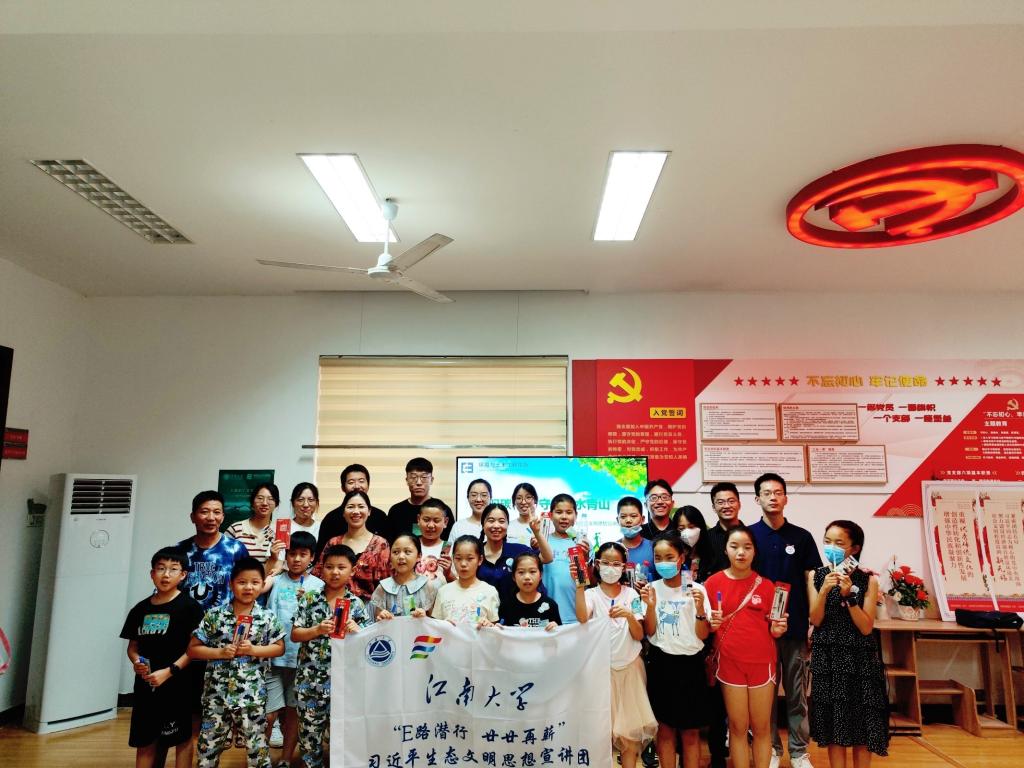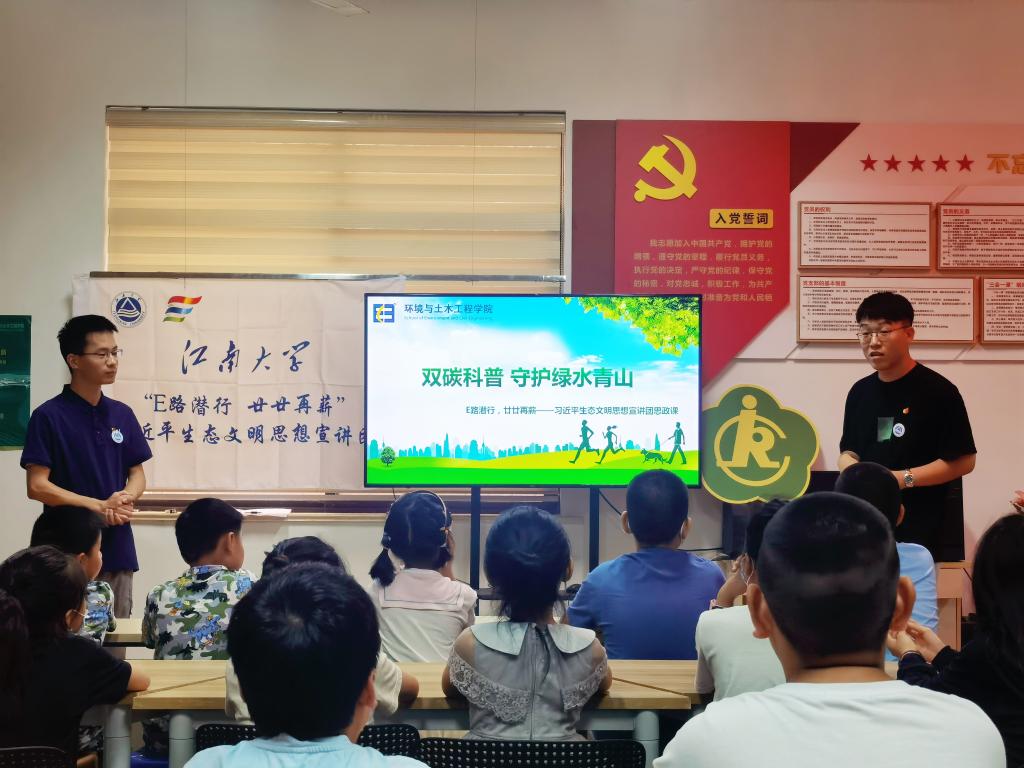 生态兴则文明兴,生态衰则文明衰。习近平总书记在全国生态环境保护大会上发表的重要讲话指出:生态文明建设是关系中华民族永续发展的根本大计。为响应习近平总书记保护生态文明的号召,江南大学环境与土木工程学院组建了“E路潜行,廿廿再薪”研究生党员宣讲团,于2022年8月中下旬分别探访了王选事迹陈列馆、顾毓琇纪念馆等红色革命基地,并在无锡市崇安寺街道东河花园社区、广益街道毛湾一苑社区、扬名街道芦一社区、广益街道毛岸新苑社区、北大街街道金河湾社区等地开展了环保科普宣讲。宣讲团以习近平生态文明思想为主题,结合海报、视频、有奖竞答等方式科普了双碳战略、垃圾分类等环保知识,寓教于乐,让大家积极参与到活动中,让环保知识深入人心。