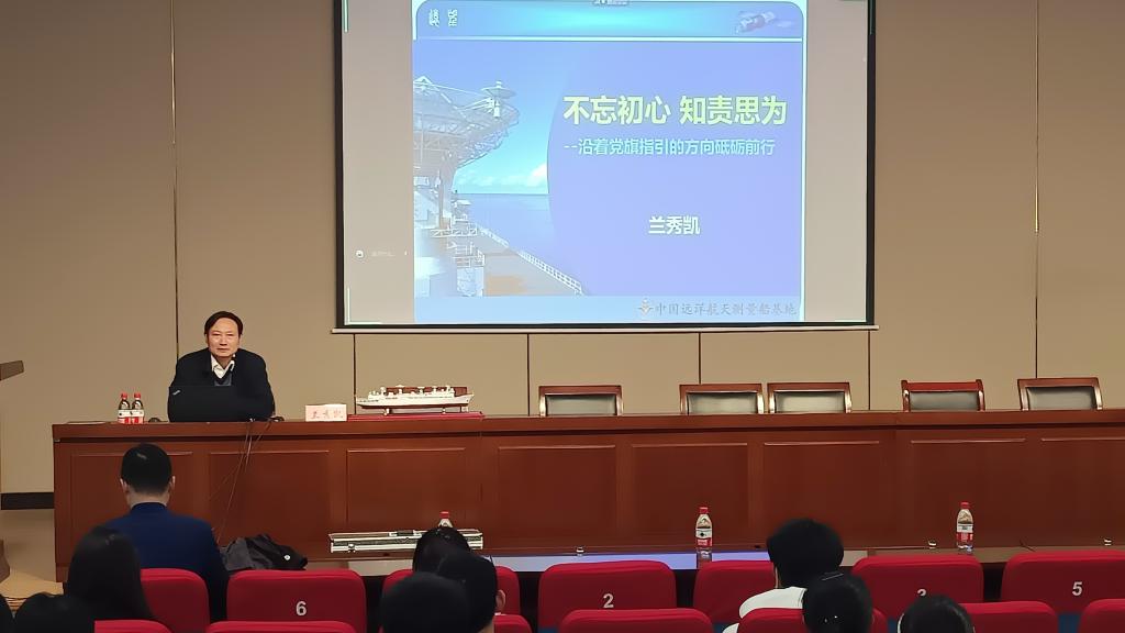 兰秀凯担任过我国十大名船之一的远望号船长,一直致力于我国的远洋、水利事业,无论在军旅生涯,还是在地方工作,始终一丝不苟、忠诚奉献。几十年如一日,他在平凡的岗位作出了伟大的贡献。兰秀凯对中交天航局成立125年来的辉煌历程和骄人业绩表示赞许,并把“战风斗浪、开拓向前”的“天航精神”和“奉献、团结、拼搏、严谨、开拓”的“远望精神”相结合,以多年的工作经历和亲身感受,从远望号的基本情况、“远望精神”的基本内涵以及身边优秀的远望人三个方面,用幽默活泼、饱含诗意的语言为全体师生讲授了一堂激情澎湃、妙趣横生、感人至深的理想信念教育课、思想政治理论课、爱国主义教育课。他最后为全体师生送出“十个有”的人生寄语,即有声有色的工作、有滋有味的生活、有情有义的交往、有张有弛的学习、有规有矩的坚守。
