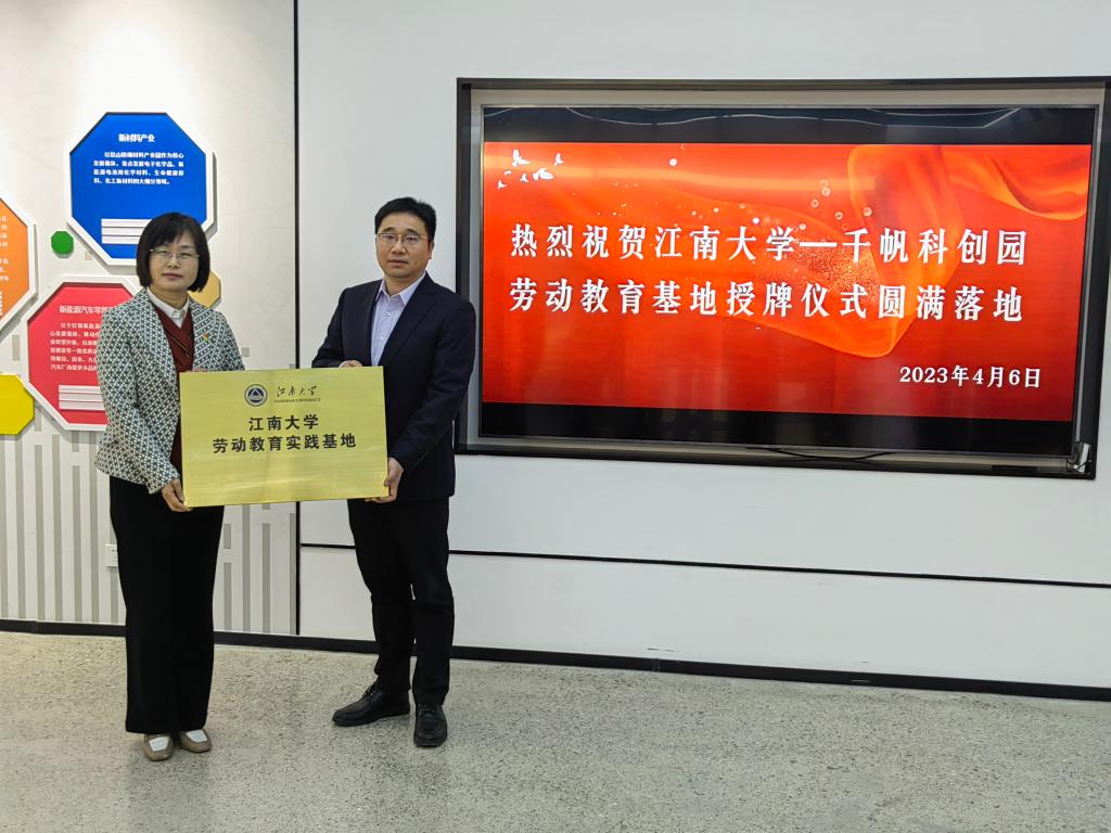 在昆山千帆科创产业园,学院一行参观科创产业园,了解产业园围绕“建设新城市、发展新产业、布局新赛道”总体部署,紧扣“高质量发展”和“集聚新动能”两条主线,大力发展“新材料”“集成电路”两大主导产业,厚植创新创业沃土,推进产业集群建设和科创人才工作。学院党委书记李艳与千灯镇党委副书记陆庆为江南大学—千帆科创产业园劳动教育实践基地揭牌。