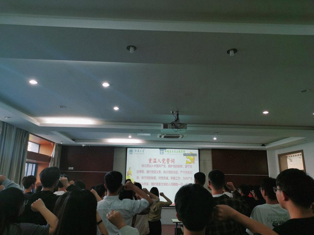最后全体毕业生党员右手握拳,再次庄重向党承诺重温入党誓词。入党誓词作为党员的行动指南,每一次重温都增强了责任感和使命感,重新回顾自身党员身份,进一步端正思想态度,纯洁入党动机,增强党性观念。