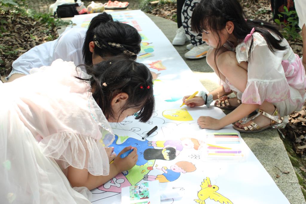 在东郑村的古树公园中,调研团为小朋友们准备5米长的涂鸦画布和颜料,小朋友们在家长的陪同下参加此次以环保为主题的涂鸦活动。在这个古树参天的“天然氧吧”中,小朋友用画笔表达着他们心中的美丽乡村,在轻松愉悦的涂鸦过程中强化着垃圾分类、低碳出行等绿色环保理念。经过共同努力,涂鸦作品圆满完成,当小朋友们被问及涂鸦活动的收获时,调研团成员惊喜地听到“垃圾分类,人人有责”的响亮回答。涂鸦结束后,小朋友们和家长还不忘与调研团一起收拾完场地后再离开,这样实际的行动体现出环保宣传活动在小朋友们心中种下“爱护环境”的种子。