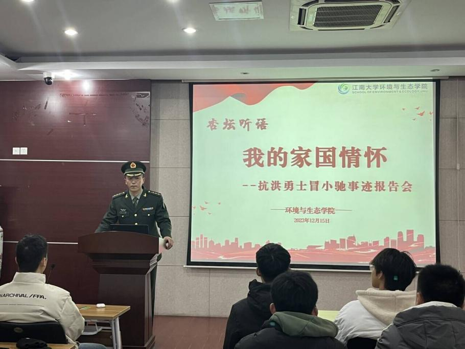 为深入学习贯彻习近平新时代中国特色社会主义思想和党的二十大精神,认真贯彻落实习近平总书记关于青年工作的重要思想,12月15日下午,江南大学环境与生态学院青年马克思主义者培养工程第一讲在学院楼D303顺利举行。中国人民解放军驻苏某部队连长冒小驰受邀担任主讲嘉宾,校关工委刘志远老师出席。本次活动由环境与生态学院分团委书记薛羚伟主持,青年马克思主义者培养工程训练营学员及环境与生态学院入党积极分子参加培训。