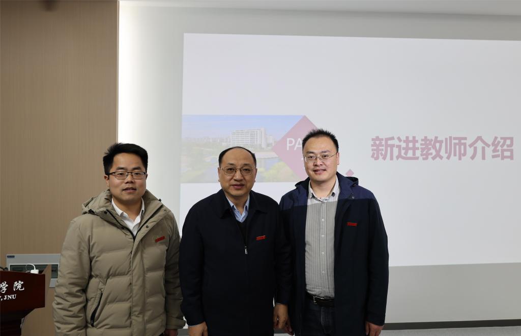 会上,2024年新入职的张军毅、满帅帅两位老师分别介绍了自己学习和工作经历,环境与生态学院领导为两位老师佩戴了校徽,希望老师们的加入为学院注入新鲜力量,创新图强,共同奋斗。