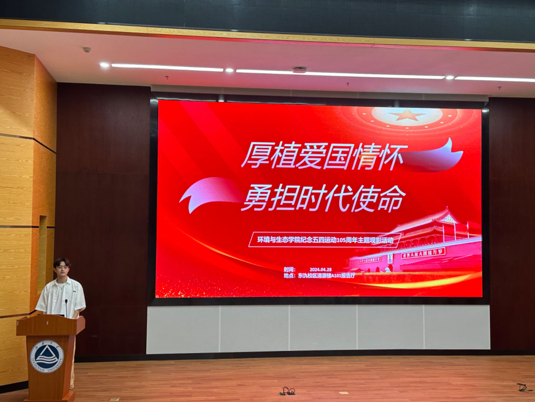 4月28日,在纪念五四运动105周年之际,环境与生态学院团委组织开展了“传承五四薪火 以青春奋斗姿态挺膺担当”环境与生态学院纪念五四运动105周年系列活动启动仪式暨主题观影活动。