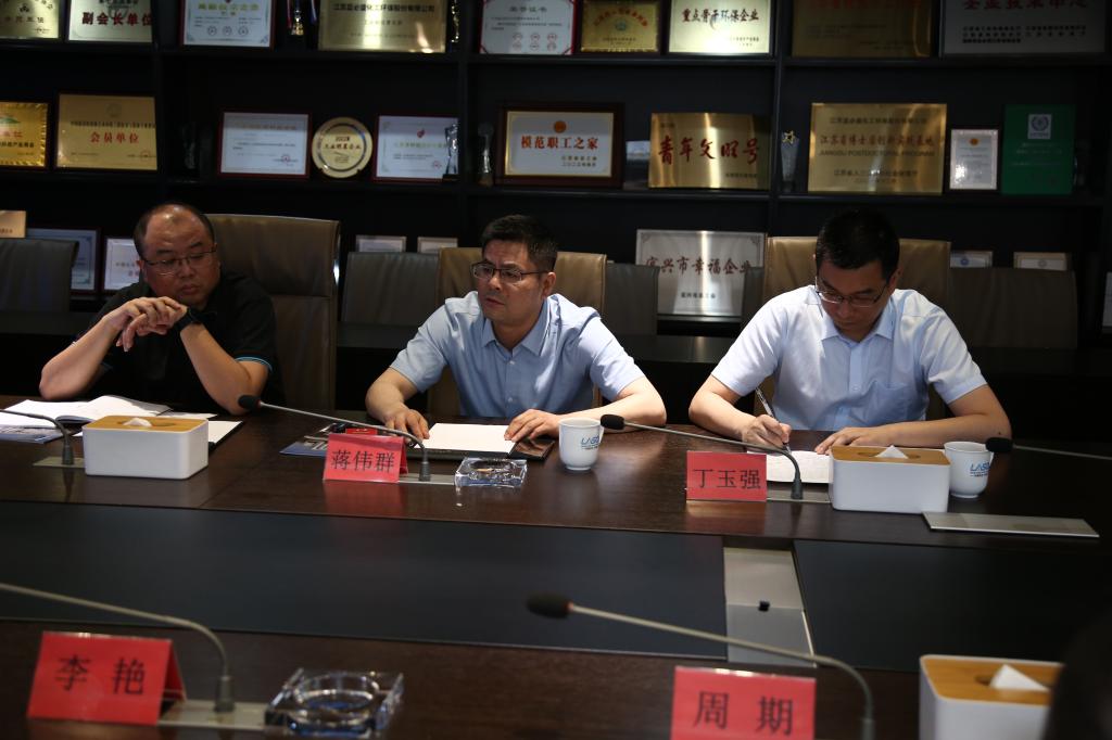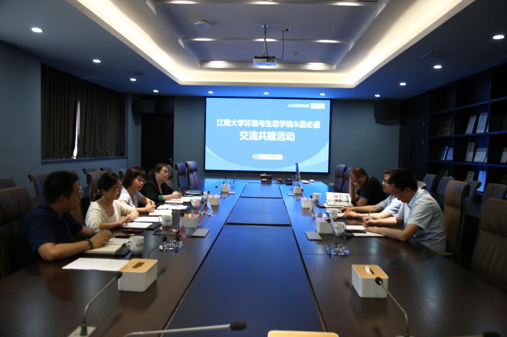 随后的交流会上,蓝必盛董事长蒋伟群首先对李艳等一行到访的老师们表示热烈欢迎,他介绍了蓝必盛企业升级转型之路,企业文化、技术特色以及二十多年来在化工废水处理领域做出的突出成绩进行了逐一介绍。接着李艳详细介绍了江南大学和环境与生态学院的发展历史,并重点介绍了学院的学科专业、党建工作和人才培养情况。最后双方就毕业生情况和人才培养模式,产业发展环境保护等领域进行了深入研讨,并交换了意见和合作设想。