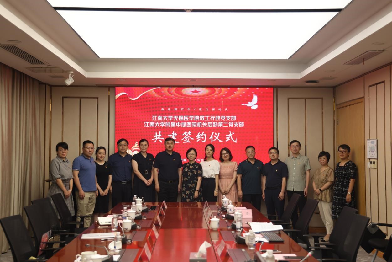 为深入贯彻学习习近平新时代中国特色社会主义思想,全面加强党组织建设,充分发挥党组织的政治功能,进一步提升党建工作水平,2023年7月7日,江南大学无锡医学院教工行政党支部与江南大学附属中心医院机关后勤第二党支部共建签约仪式在医学院C106举行。医学院党委书记向琪,江南大学附属中心医院党委书记鲁晓杰,江南大学附属中心医院党办主任万付梅,医学院副院长陈雪,机关后勤党总支书记李杨,机关后勤第二党支部书记、教育处处长姜宇,机关后勤第二党支部副书记田媛媛以及双方党支部党员出席签约仪式。活动由医学院党委副书记、副院长、教工行政党支部书记包羽主持。