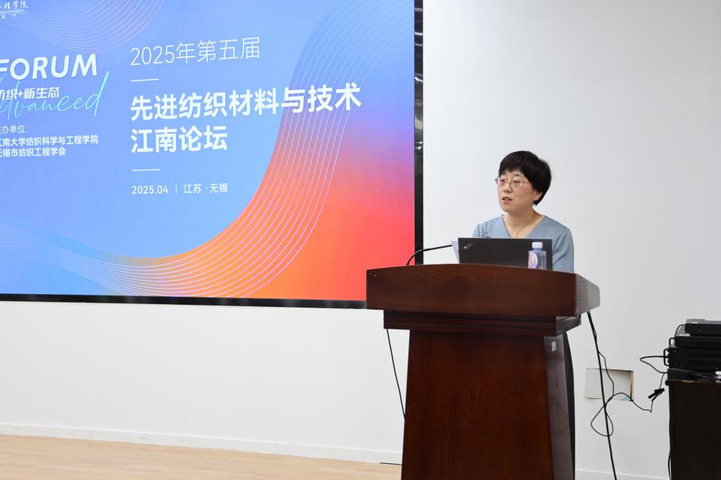 朱飞代表学校致辞,他向莅临论坛的各位学者和嘉宾表示热烈的欢迎和感谢。希望各位专家学者相聚于此,以学术交流赋能纺织学科创新发展,推进先进纺织技术交叉融合。希望青年教师和学生以此次论坛为契机,加强先进纺织材料与技术科研探索,进一步提高我校纺织学科科研实力。