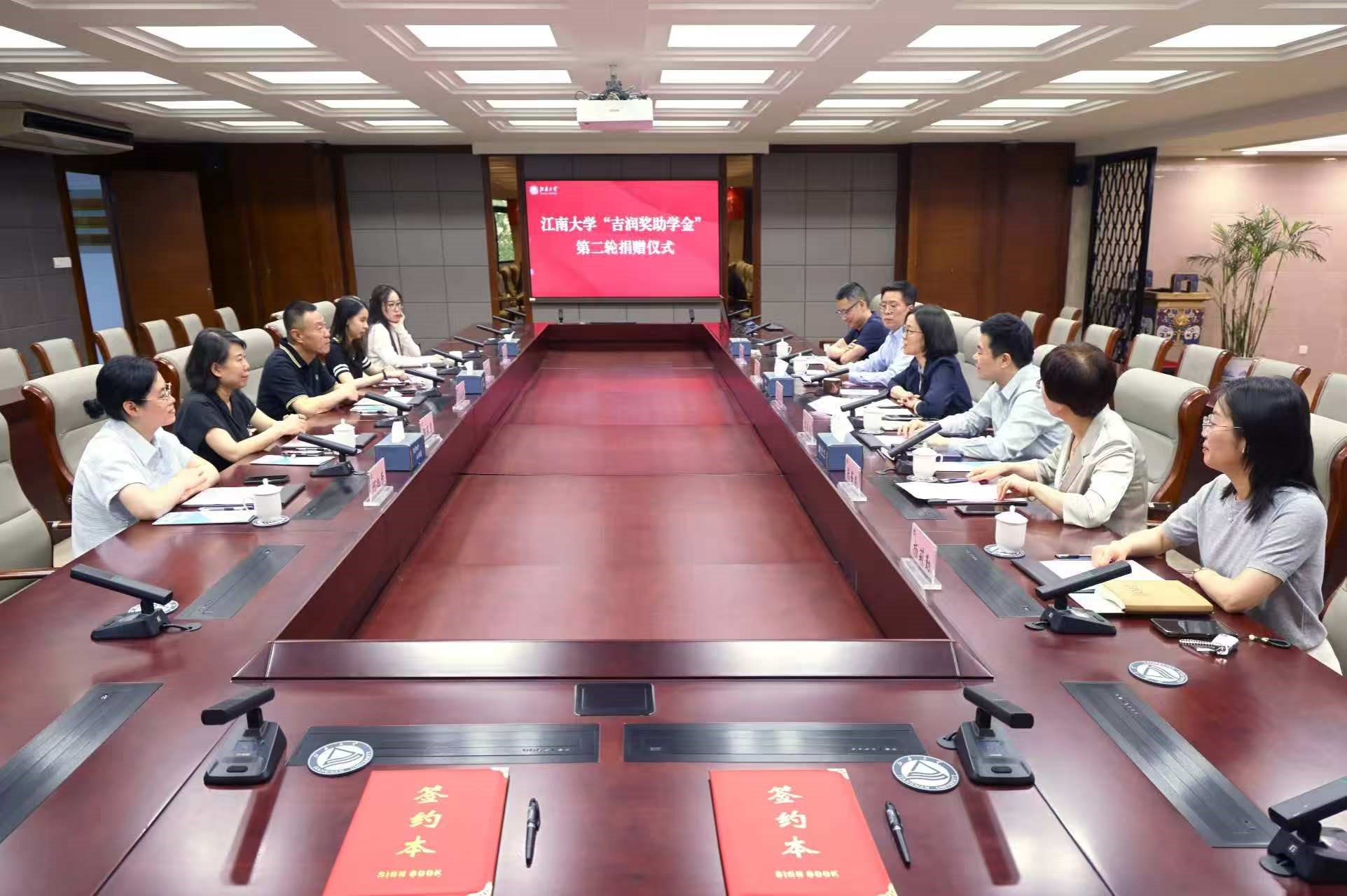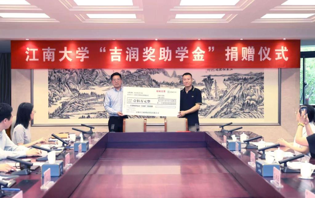 5月12日,江南大学与无锡市吉润国际贸易有限公司在行政楼B305会议室举行第二轮“吉润奖助学金”捐赠签约仪式。无锡市吉润国际贸易国际有限公司董事长范恒明、副董事长范晓雁携企业代表,江南大学党委常委、副校长张影陆,学生工作部(处)部(处)长周伟涛、社会合作与校友联络处处长周云龙、教务处副处长黄锋林,纺织科学与工程学院党委书记张菁燕及副书记、副院长杨莉勤出席活动,周云龙主持签约仪式。
