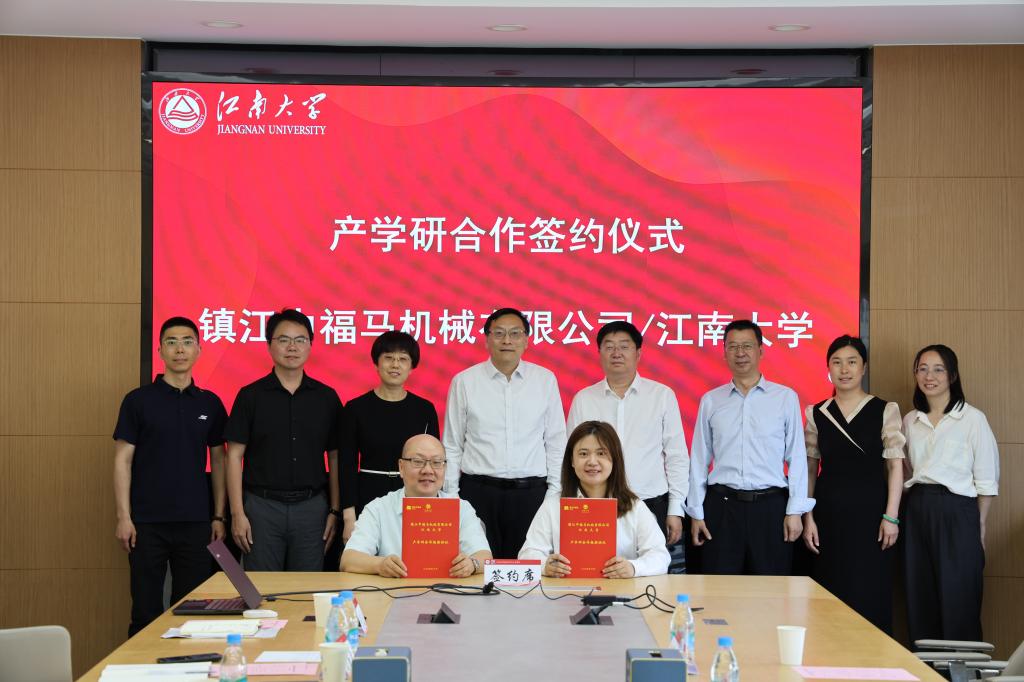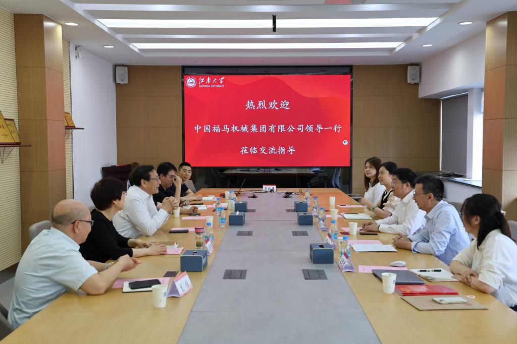 5月14日上午,中国福马机械集团有限公司党委副书记楼志刚、党委委员/工会主席刘胜男、镇江中福马机械有限公司党委书记/董事长沈锦桃一行到访江南大学纺织科学与工程学院,双方围绕科研合作开展深入交流并签订产学研合作协议。江南大学党委书记吴正国、纺织科学与工程学院党委书记张菁燕、副院长马丕波及龙柱教授等出席。