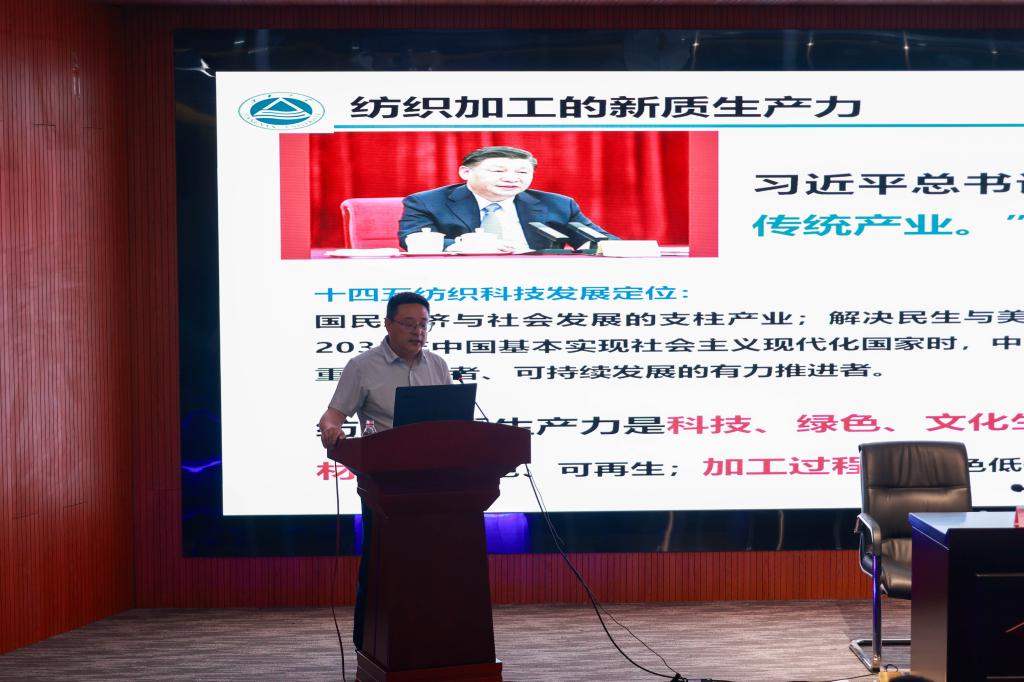 付少海对学院情况进行了介绍。他指出,江南大学作为教育部直属、国家“双一流”建设高校,在人才培养、科学研究和社会服务等方面取得了显著成效。纺织科学与工程学科作为学校的传统优势学科,近年来在新型纺织材料、绿色染整技术、智能纺织装备等研究方向取得了一系列突破性成果。他还特别强调,学院坚持产学研深度融合的发展道路,与众多知名纺织企业建立了长期稳定的合作关系,为行业转型升级提供了强有力的科技支撑和人才保障。