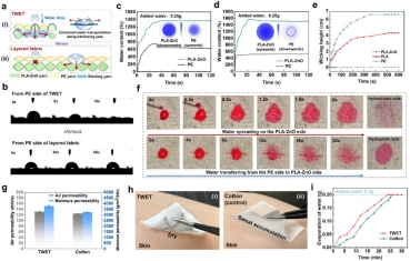 图3.基于接结拓扑的热湿管理电子纺织品的单向导湿性能表征