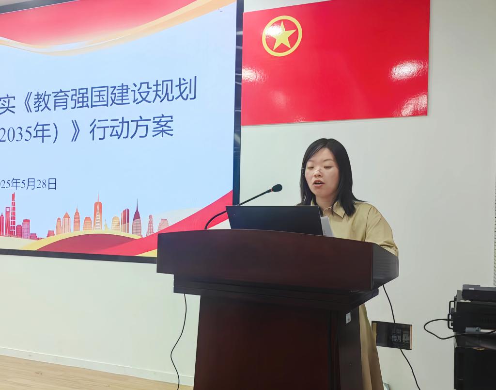 学院党委副书记兼副院长杨莉勤以《江南大学贯彻落实<教育强国建设规划纲要(2024—2035年)>行动方案》为主要内容,作教职工政治理论领学,她重点对立德树人铸魂行动、教育迭代跃升行动、学科筑峰扬优行动等8个专项行动、35个重点任务进行了详细解读。最后强调,全体教职工要深刻理解教育强国的科学内涵,认真对标行动方案,以钉钉子精神狠抓落实,努力成为学校落实教育强国建设“蓝图”转化为“实景图”行动的中坚力量。