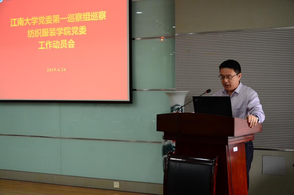 4月24日下午,纺织服装学院在A103召开巡察工作动员会,校党委委员、校党委巡察工作领导小组成员、党委办公室主任、党委统战部部长兼保密办公室主任朱飞同志,江南大学党委第一巡察组组长、校党委委员、校长办公室主任张光生同志,巡察组成员校纪委委员、资产经营管理公司党总支书记陈敏娟同志,校纪委委员、机关党委书记周建中同志、校团委书记王维同志,医学院党委秘书兼人事秘书包羽同志,纺织服装学院党政班子全体成员出席了会议,纺织服装学院共131名教职员工参加了会议。动员大会由纺织服装学院院长付少海主持。