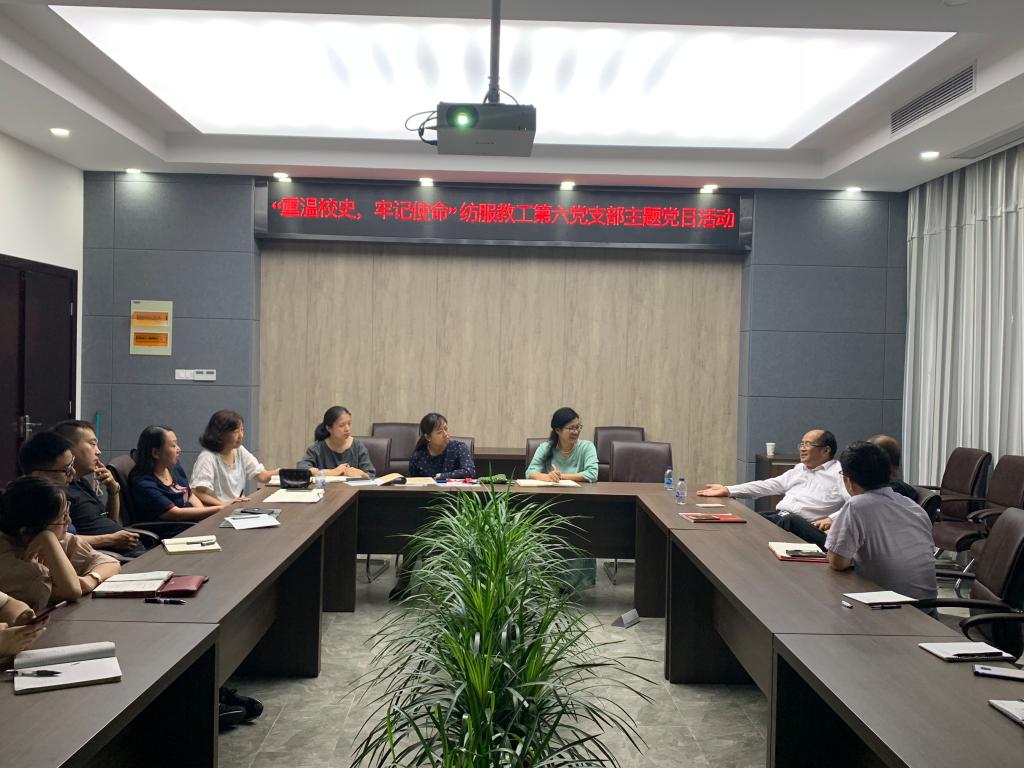 2019年9月30日,纺织服装学院教工第六党支部“重温校史,不忘初心”主题党日活动在纺服B101会议室召开,支部全体党员参加了党日活动,活动还邀请了教工第五党支部部分党员列席本次活动。