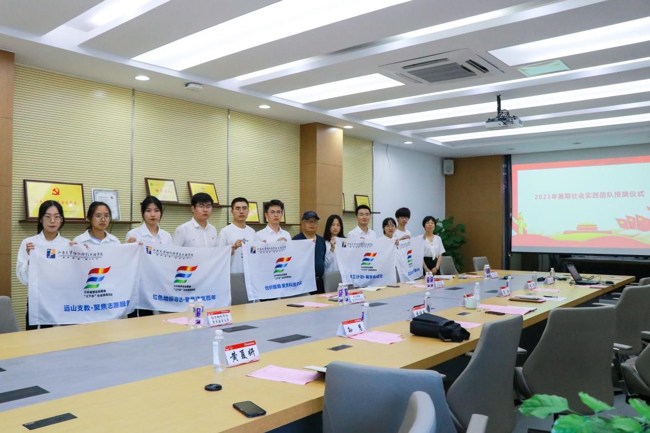 仪式上,全体人员歌唱了《光荣啊中国共青团》。由陈裕介绍了2021年暑期社会实践的基本情况,宣读了2021年暑期社会实践重点团队名单,包括省级重点团队“纺织援疆·聚焦科技支农”,院级重点团队“远山支教·聚焦志愿服务”“红色地标寻访·聚焦建党100周年”“卓工计划·聚焦专业建功”“连片山区走访·聚焦乡村振兴”五支暑期社会实践重点团队。