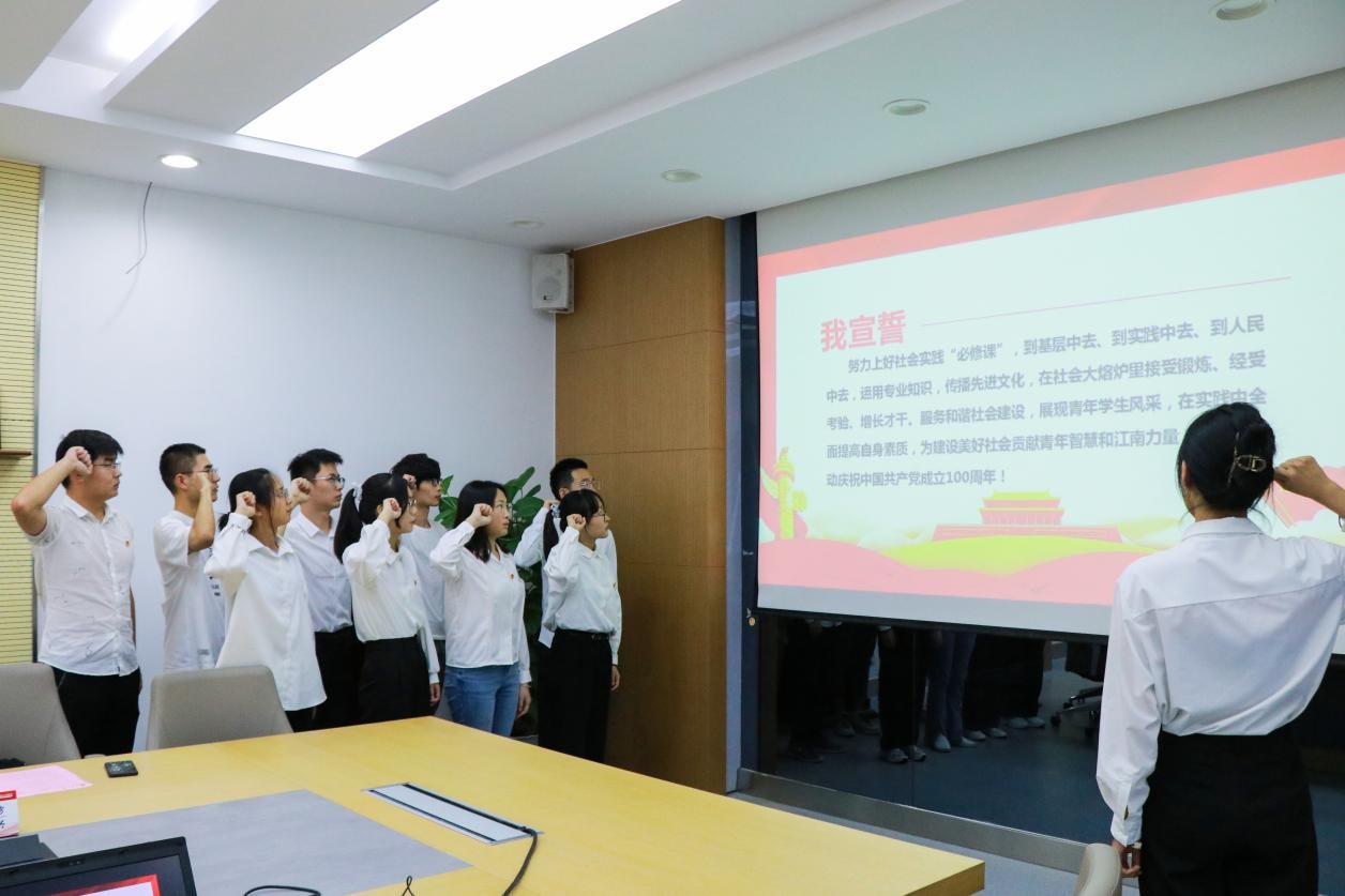 仪式最后,院学生会吕鑫带领社会实践重点团队代表进行出征宣誓。2021年暑期社会实践的号角已经吹响,踌躇满志的江南纺织青年即将投入到火热的社会实践活动中去。相信纺织科学与工程学院社会实践团队一定能继承光荣传统、不负众望,建新功立新业,在服务社会和服务人民的活动中,书写学院大学生暑期“三下乡”社会实践活动的新篇章,用实际行动庆祝中国共产党成立100周年。