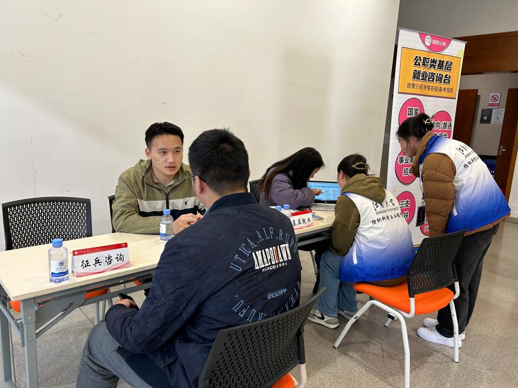 双选会还设置征兵入伍、基层就业咨询专区,精准做好导向就业的前置服务工作,为毕业生顺利求职助力增益。会场气氛热烈,毕业生们与目标企业深入交流,不少毕业生在现场与用人单位已达成初步的就业意向。部分低年级同学也主动提前来感受求职氛围、了解行业发展与企业人才需求。为做好本次双选会,学院从前期宣传邀请、审核确认招聘单位,与用人单位精准对接,再到会场布置与组织等,为用人单位提供全程“一对一”志愿者对接,为来学院招聘企业提供优质服务。此外,院领导也来到双选会现场,了解用人单位的人才需求,看望校友及校企合作企业代表,并与应聘毕业生亲切交流。