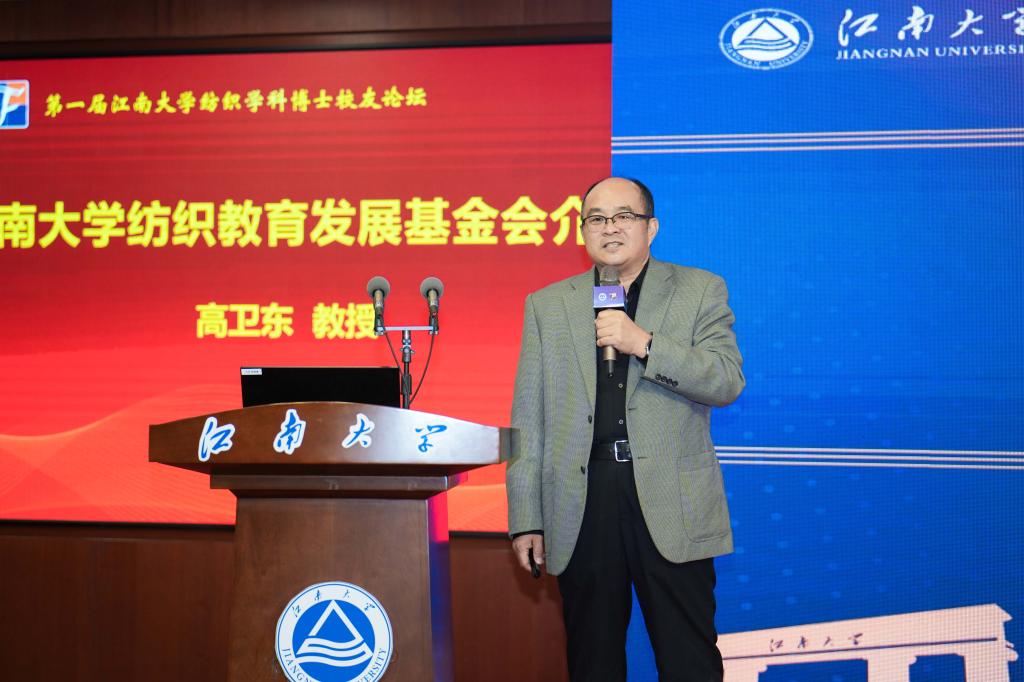 最后,高卫东向大会介绍了江南大学纺织教育发展基金会发展情况,向广大校友发出“缘起江南、同行天下,蠡湖大道1800号永远是大家的精神家园”的盛情邀请,倡议每一位校友一如既往关心、支持母校发展,为推动学校内涵式高质量发展凝聚更多动能。