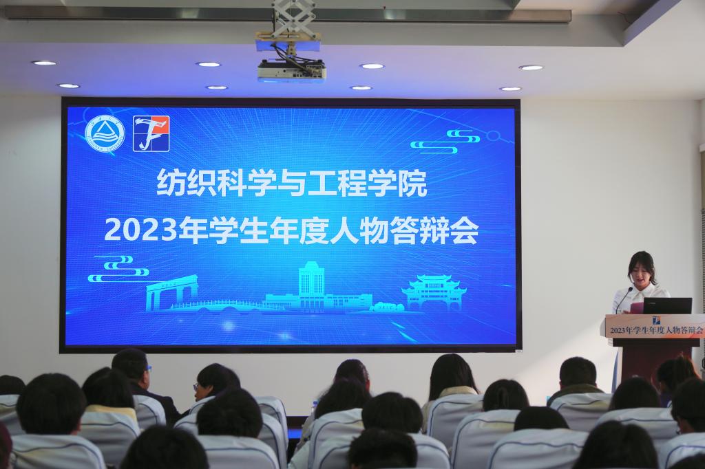 本次学生年度人物评选经自主申报、年级推荐、专家评审确定候选人、先进事迹展示、现场答辩展示等环节,最终房敦杰、张京、孟文俊、“鼋梦丝路”纺织援疆团、黄沁雯获得“纺织科学与工程学院2023年学生年度人物”荣誉称号;余治华、汪宇、徐好、朱莘兰、崔一帆、丁云、李珍琪、李自蓉、2020级学生组织主席团、金炳奇获得“纺织科学与工程学院2023年学生年度人物提名奖”荣誉称号。