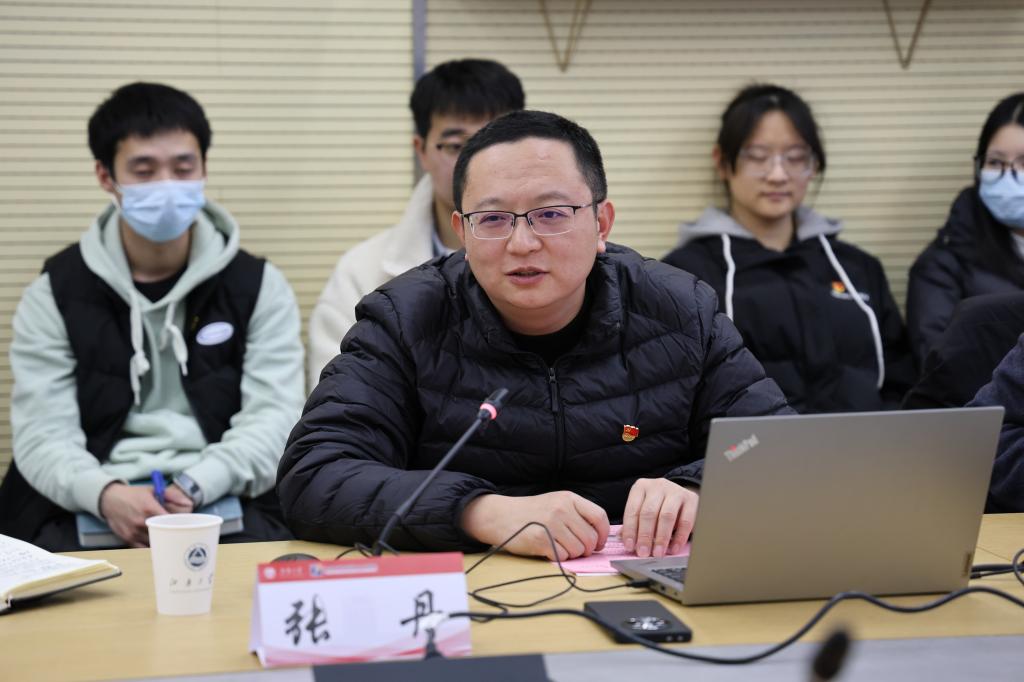 张丹以《我心中的教育家精神》微视频引入习近平总书记在致全国优秀教师代表座谈会与会教师代表的信中提出的中国特有的教育家精神,并以《大力弘扬教育家精神 争做新时代大先生》为题作微党课,从“大情怀、大德行、大智慧、大学问、大爱无疆和大事业”方面阐述并讲解了教育家精神的深刻内涵和时代意义。