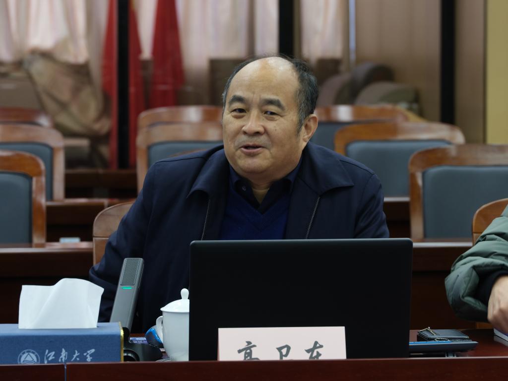 江南大学纺织科学与工程学院院长付少海介绍学院情况。他从学科现状、人才培养、科学研究、社会服务、国际交流5方面介绍学院近期的建设成果。